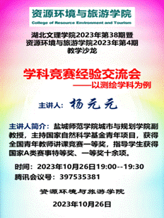 (资环学院通讯员 陈威)2023年10月26日,bevictor伟德国际1946成功举办了2023年第4期教学沙龙。本次沙龙特邀盐城师范学院城市与规划学院的副教授杨元元博士作为主讲嘉宾,由学院副院长孙小舟主持,我院各位教师积极参加。