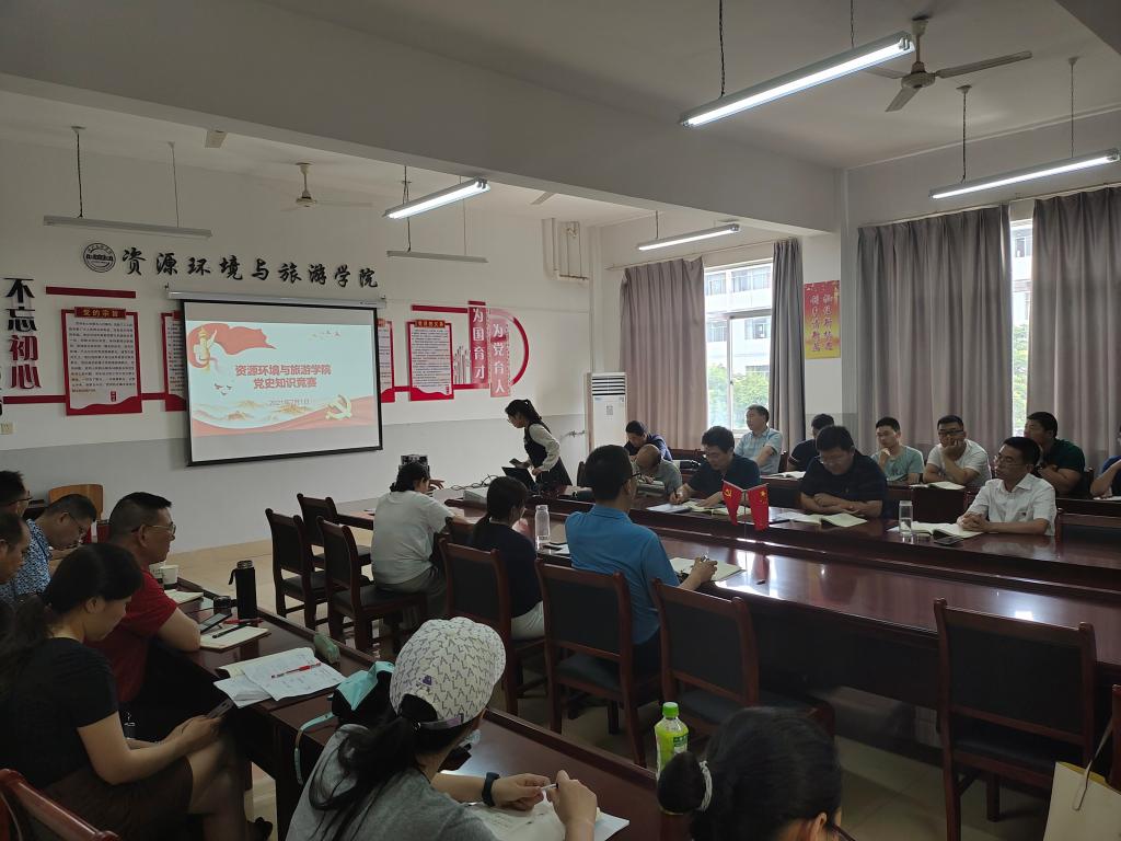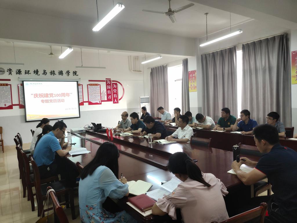 7月1日下午2:00,资环学院党委组织全体教、职工师开展“庆祝建党100周年”专题党日活动:教师代表谈观看建党100周年感受、开展党史学习教育知识竞赛、集中观看《古田军号》。