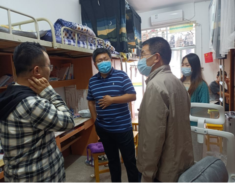2022年9月28日上午,院党委书记杨霄、副书记鲁宏图、辅导员李宇、辅导员李雨萌走进11栋、24栋新生宿舍,开展“下基层、察民情、解民忧、暖民心”慰问活动,实地了解因疫情延迟返校学生情况、询问学生实际需求、回应学生关切。