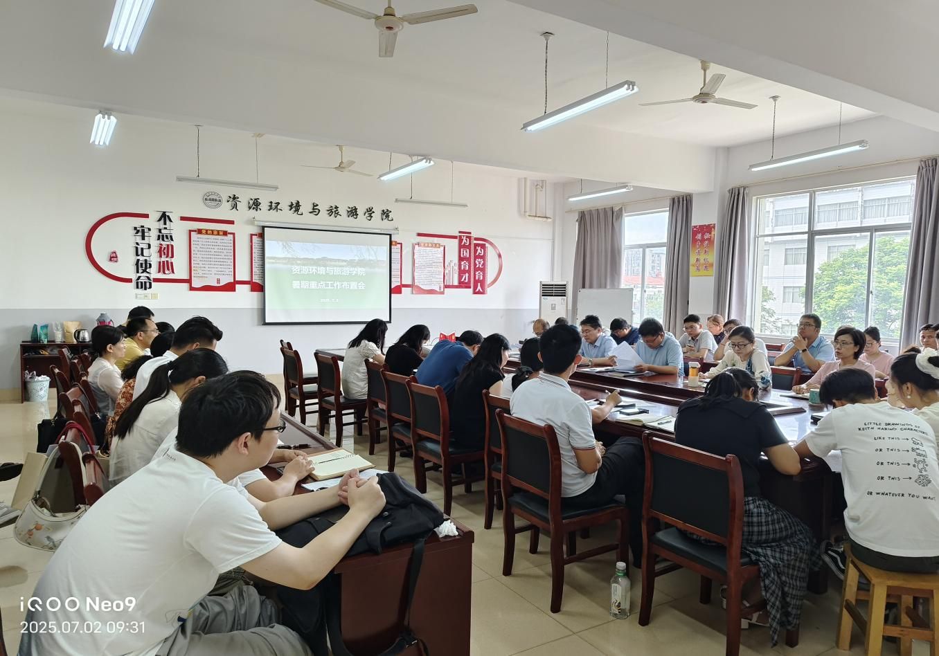 (资环学院 通讯员 邓洁屹)为深入落实《2025 年党政工作要点》确定的目标任务,扎实推进“十大专项行动”和“四高攻坚计划”,统筹推进教育教学、科研创新、学生管理与社会服务等各项工作,学院于2025年7月2日召开暑期工作部署会议。会议由党委书记杨霄主持,全院教职工参加。
