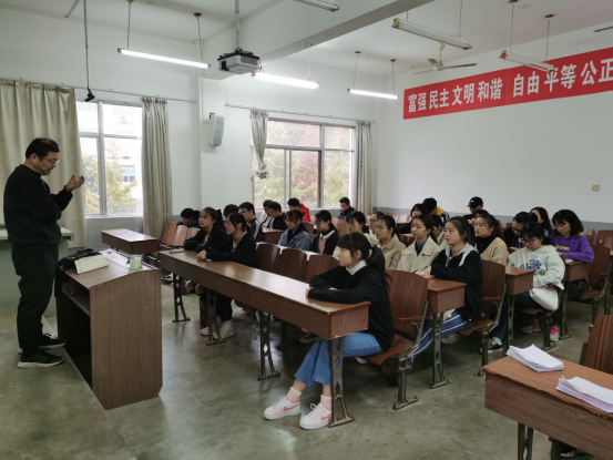 在后面的特别班会中,张中旺首先就学习方面向全体同学传授了经验。随后,在生活方面给了同学们关心,并期望同学们能够在大学生活中完善自我,挑战自我。最后,张中旺对本次会议进行总结讲话,指出同学们要继往开来,更进一步。
