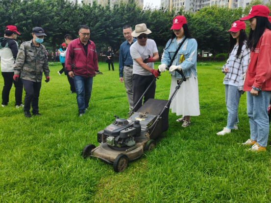 授牌仪式结束后,同学们开始了此次的劳动教育的第一课《修剪花草》。绿化科科长梁隋文给同学们讲解和示范修剪月季花的要领,绿化科员工教同学们如何使用除草机,同学们认真聆听讲解、观看示范,并在工作人员的指导下进行实地操作。地理科学2012的刘李娜同学说道:“以前觉得修剪花草十分简单,可没想到这十分考验一个人的动手能力,稍有失误便会影响花草的长势和美观。通过今天的劳动活动,我学习到了许多课本之外的知识。”