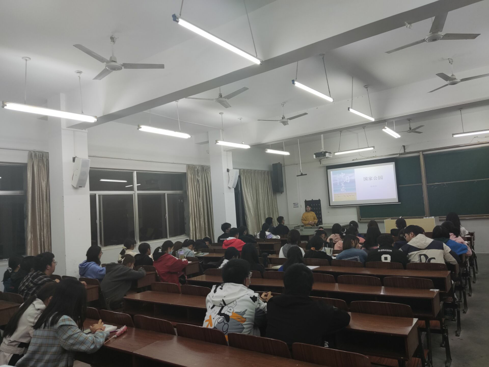 (bevictor伟德国际1946 通讯员 石静怡 审稿人 李宇)为了使同学了解国家战略,增加保护国家自然资源的意识;加强专业认知,更好的制定大学生活规划,bevictor伟德国际1946于2021年10月18日晚6时30分在北区6栋503教室开展了“23万平方公里的中国宝藏——中国公园”的讲座,本次活动由田美玲老师主讲,旅管2111班的全体同学参与本次活动。