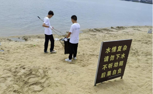 鱼梁洲环岛景观带是襄阳市汉江生态保护的一项重要工程,景色旖旎,环境优美,其中阳光水岸凭借沙滩景观每日吸引大量游客前来,使得江滩面临着一定的环境问题。7月20日队员们集体前往鱼梁洲阳光水岸开展净滩活动,在活动期间队员们相互合作,两两分工,积极净化江滩,用实际行动践行绿色中国理念,并取得了游客的夸奖。