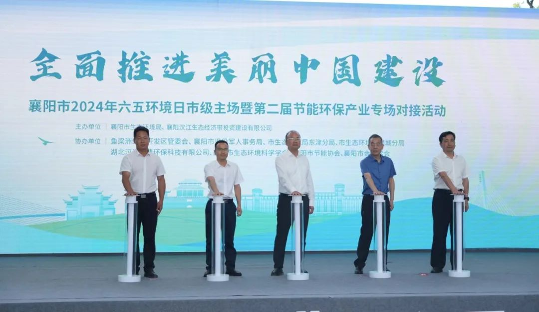 当天上午9:00,鱼梁洲环岛公园内,六五环境日主题宣传片循环播放,伟德国际1946bv的师生们怀着激动的心情与会嘉宾们一同步入会场。活动由歌伴舞《让中国更美丽》拉开序幕,领导和嘉宾到场后,主持人展开活动背景介绍与出席领导嘉宾的介绍。华中科技大学环境学院副院长吴晓晖教授作《无废城市建设背景下的减碳技术前沿》报告;兴业银行武汉分行绿色金融部经理李舜作《绿启未来 领航兴业》报告;湖北中研精滤环保设备有限公司总经理、总工程师胡耘辉作《高干隔膜压滤机制造及污泥固废资源化技术》报告推介。市人民政府副市长、党组成员张学林,鱼梁洲经济开发区党工委书记、管委会主任、一级调研员水波,湖北省生态环境厅驻鄂北专员办主任高润保,市生态环境局党组书记、局长蔡金海,襄阳汉江生态经济带投资建设有限公司党委书记、执行董事李浩共同启动襄阳市第二届节能环保产业专场对接活动。