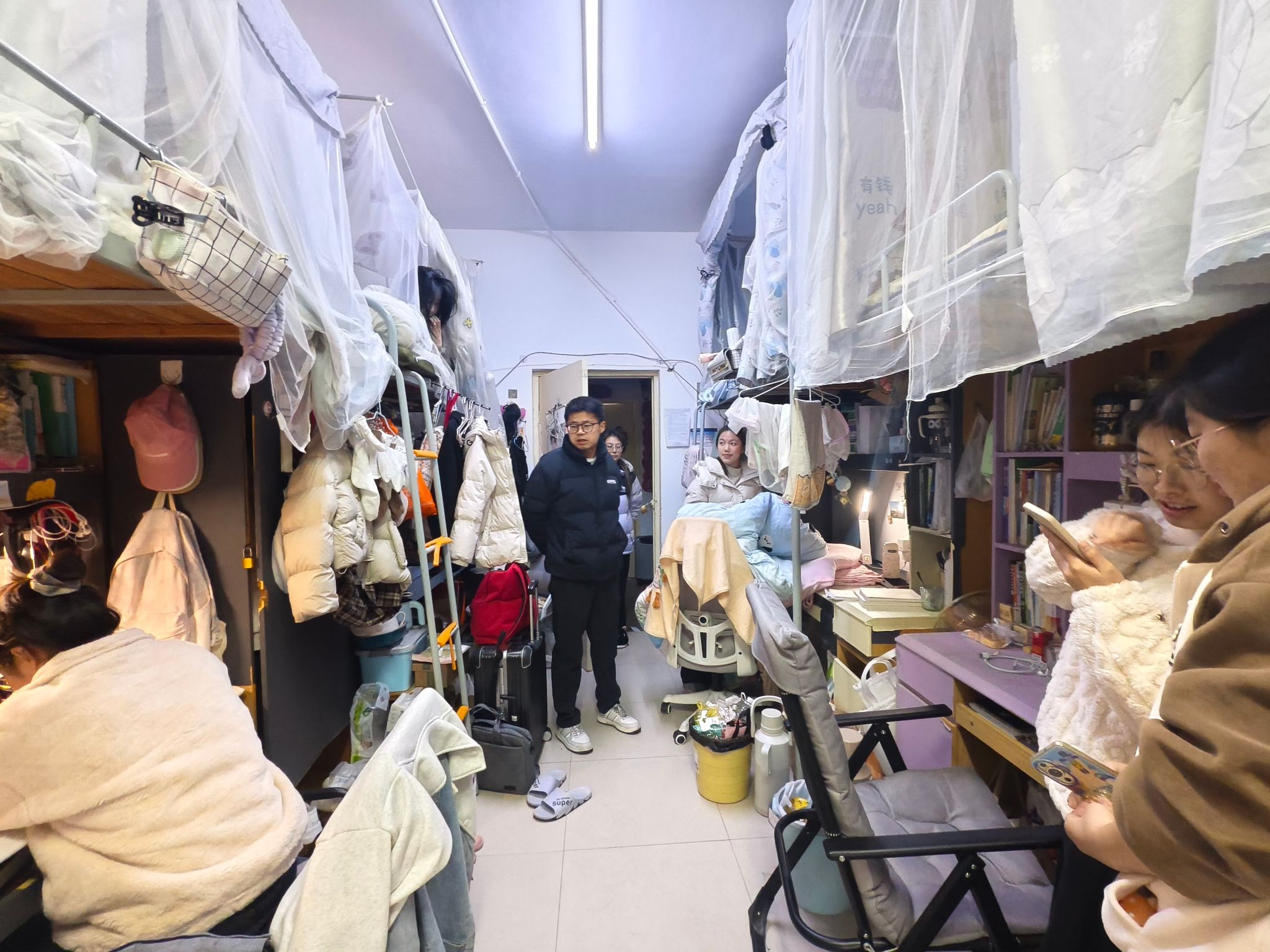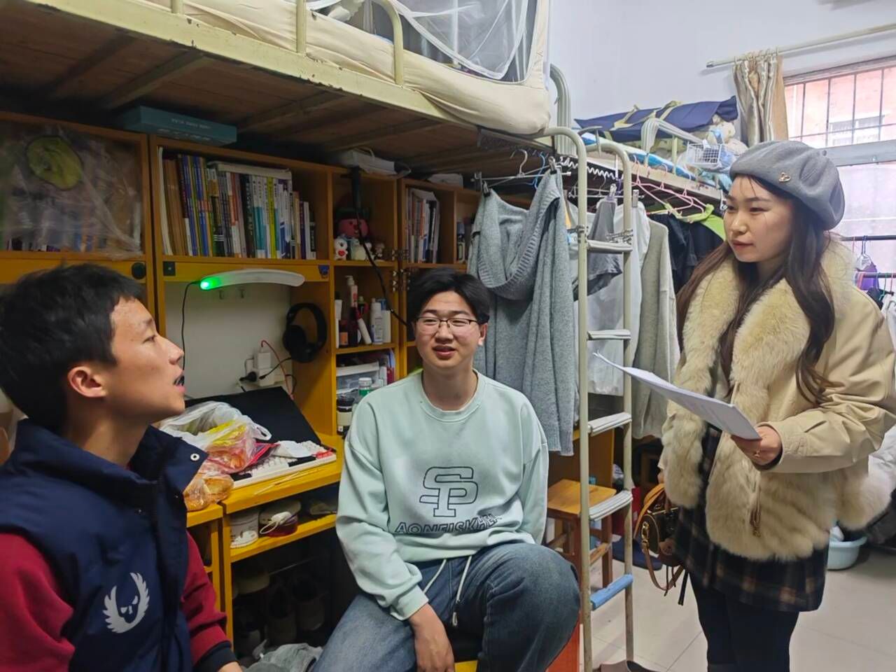(资环学院通讯员 邓仕元)新学期伊始,资环学院党委副书记黄文带领全体辅导员深入学生宿舍,开展走访慰问活动。在宿舍内,老师与同学们亲切交流,细致询问其寒假生活经历及返校适应情况。叮嘱同学们要严守宿舍用电安全,提高防诈意识,及时调整作息状态,收心归位,以饱满的热情投入到新学期的学习与生活中。一句句关怀,一声声叮嘱,温暖直达心间。新起点,新征程,愿同学们不负时光、逐梦前行!