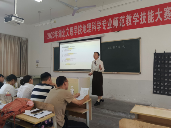比赛分为模拟授课,说课两个部分,评委由地科系教师和上届比赛获奖学生组成。在赛前指导阶段,地理科学系李权国主任等从活动组织、评分规则,选题等方面进行详细安排与跟进,帮助参赛同学解答疑惑,为比赛做好了充足的准备。比赛阶段,评委们从教姿教态、教学语言、板书设计、多媒体课件等各个方面考核了学生的教学水平。通过激烈地角逐,唐雅丽等六名同学取得了最终的胜利,并获得进入校赛的资格。