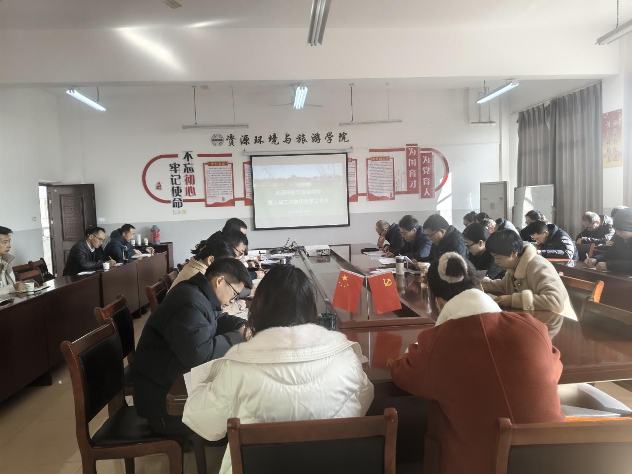 院长张弢汇向大会报告了资环学院2025年工作情况。报告全面回顾了学院 2025年在教学改革、科研创新、人才培养、学科建设、社会服务等方面取得的成效,客观分析了当前发展面临的机遇与挑战,明确了下一步工作的重点任务,为学院高质量发展绘就了清晰蓝图。