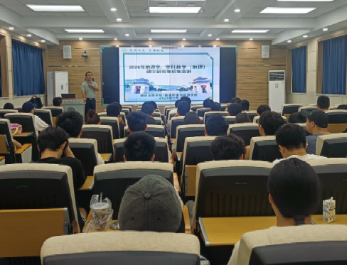 (通讯员 刘双圆)为进一步拓宽硕士研究生招生渠道,吸引更多优质生源,9月29日上午,地理科学系副主任郭超教授、研究生办主任蒋妍以及地理科学系刘双圆博士一行,赴黄冈师范学院地理与旅游学院开展硕士研究生招生宣传。黄冈师范学院地理与旅游学院120余名师生到场参与了宣讲会。