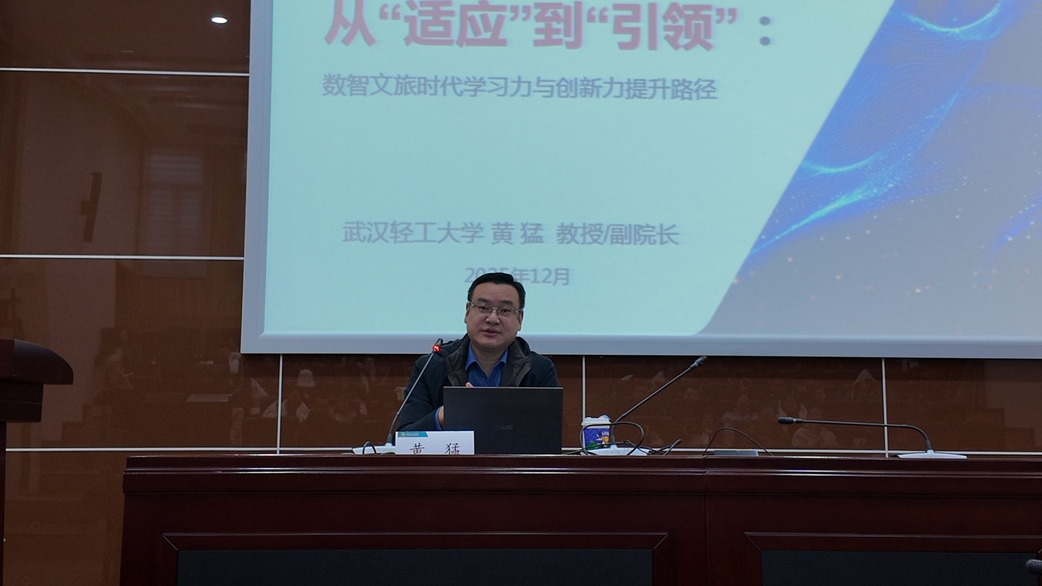 (通讯员:李萍)2025年12月5日上午,伟德国际1946bv旅游管理硕士(MTA)教育中心“文旅问道讲堂”学术报告会在图书馆一楼报告厅顺利举行。本次报告会特邀武汉轻工大学黄猛教授与武汉商学院旅游管理学院副教授、湖北省旅游学会秘书长刘军博士担任主讲嘉宾,围绕数智文旅时代的能力提升与湖北旅游产业空间发展两大主题展开深入分享。本次讲座由旅游管理硕士(MTA)教育中心主任朱运海教授主持,bevictor伟德国际1946师生及相关领域学者参与了本次活动。