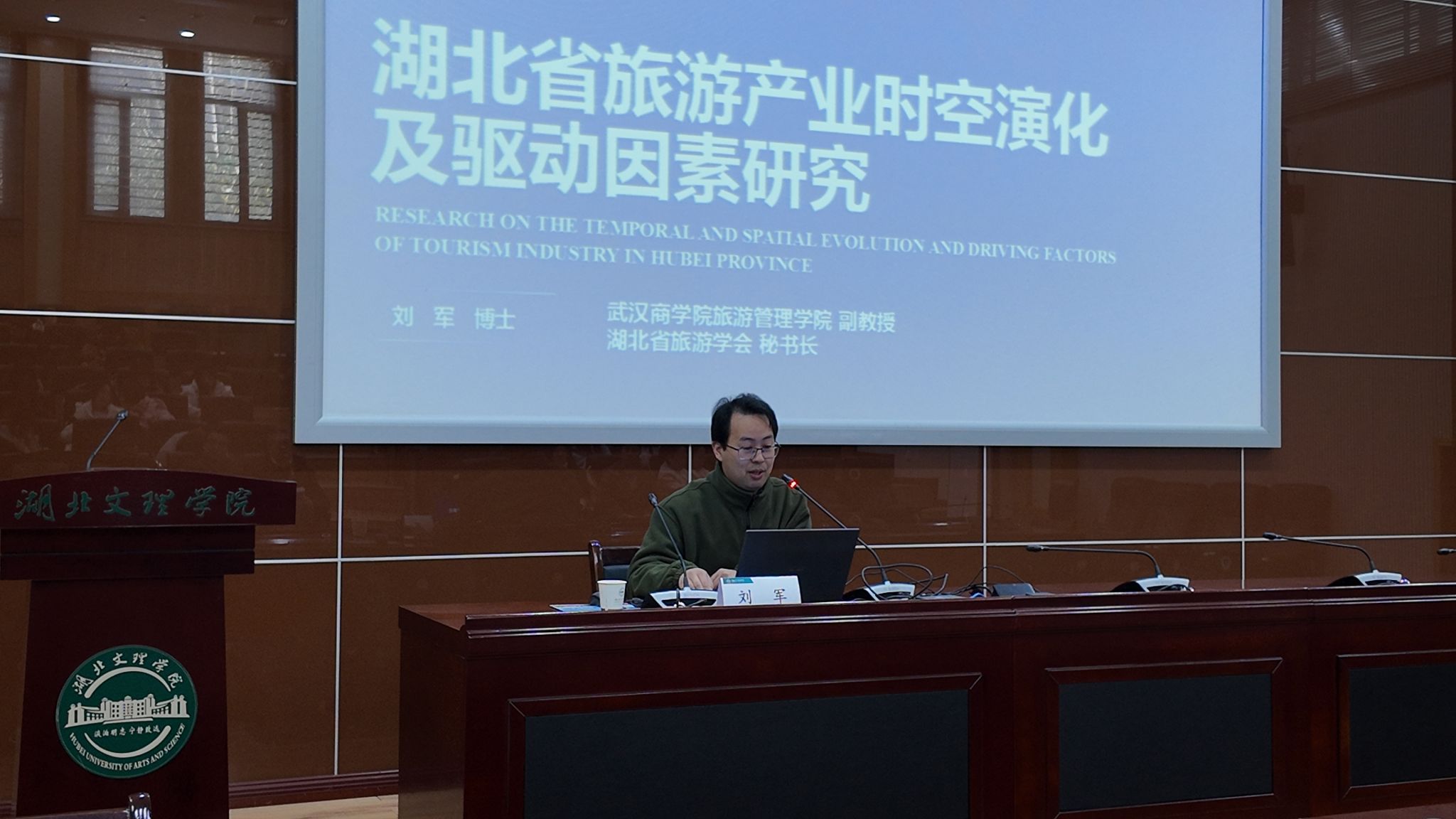 刘军博士分享了《湖北省旅游产业时空演化及驱动因素研究》。他从空间视角出发,指出旅游产业具有鲜明的集聚性与区域分异特征。湖北已形成长江沿线发展带、汉江文化走廊与西部山原文化生态区“三分格局”,武汉、襄阳、鄂西三大城市群分别呈现“城市主导型”“文化—生态型”“生态文化融合型”等不同空间演化模式。他强调,理解旅游资源的空间分布、设施布局与客流动态,是优化区域旅游协同、推动高质量发展的关键。